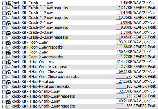 ピークファイルの名前は元音源とは関係のない(ことはないが、人間が見ても意味がわからない)英数字の羅列になるので、ファイル名を見て用済みのピークファイルだけ選んで削除することは難しい。