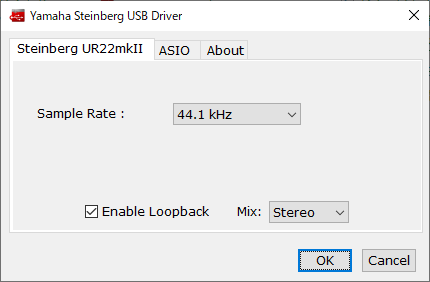 使用している機器のタブを選び、「Enable Loopback」にチェックを入れるとOK。