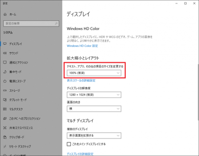Windows10の設定の[ディスプレイ]には、テキストやアプリを拡大して表示させる機能が存在する。