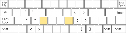 * - 上中下段の中指+薬指同時打鍵で、各種括弧やクオートを入力